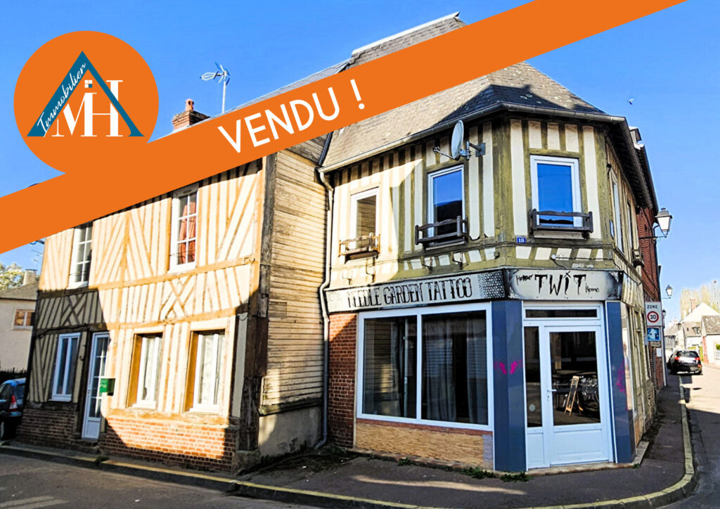 MH Immobilier vous propose – exclusivité ! – dans le centre de THIBERVILLE cet immeuble avec un local commercial et une habitation type F3 d’environ 72 m² habitables avec deux chambres le tout sur une surface cadastrale de 43m².