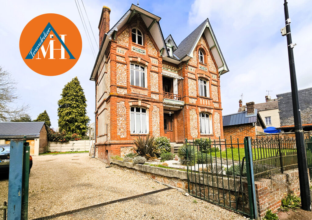 MH Immobilier vous propose – RARE ! – centre de THIBERVILLE, cette spacieuse et charmante maison de type ‘villégiature Normande’ des années 1920. Plus de 150 m² habitables, 4 chambres, un bâtiment garage/atelier, sous-sol..