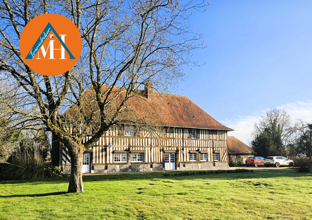 MH Immobilier vous propose – RARE à la vente ! – Cette spacieuse et charmante ‘maison de Maître’ Normande de plus de 255m² habitables ! Actuellement 7 sur une parcelle de 8 693m² arborée de diverses essences.
